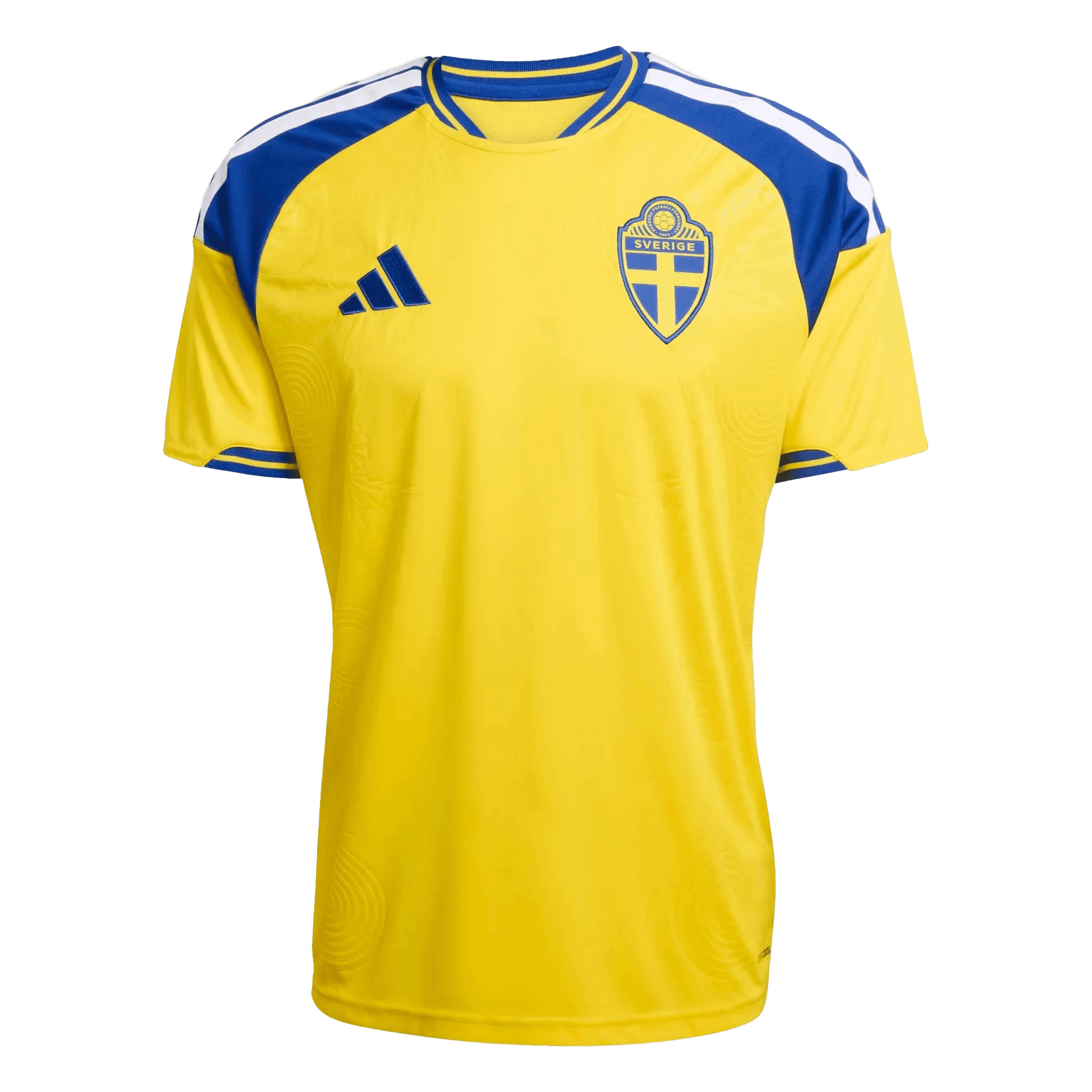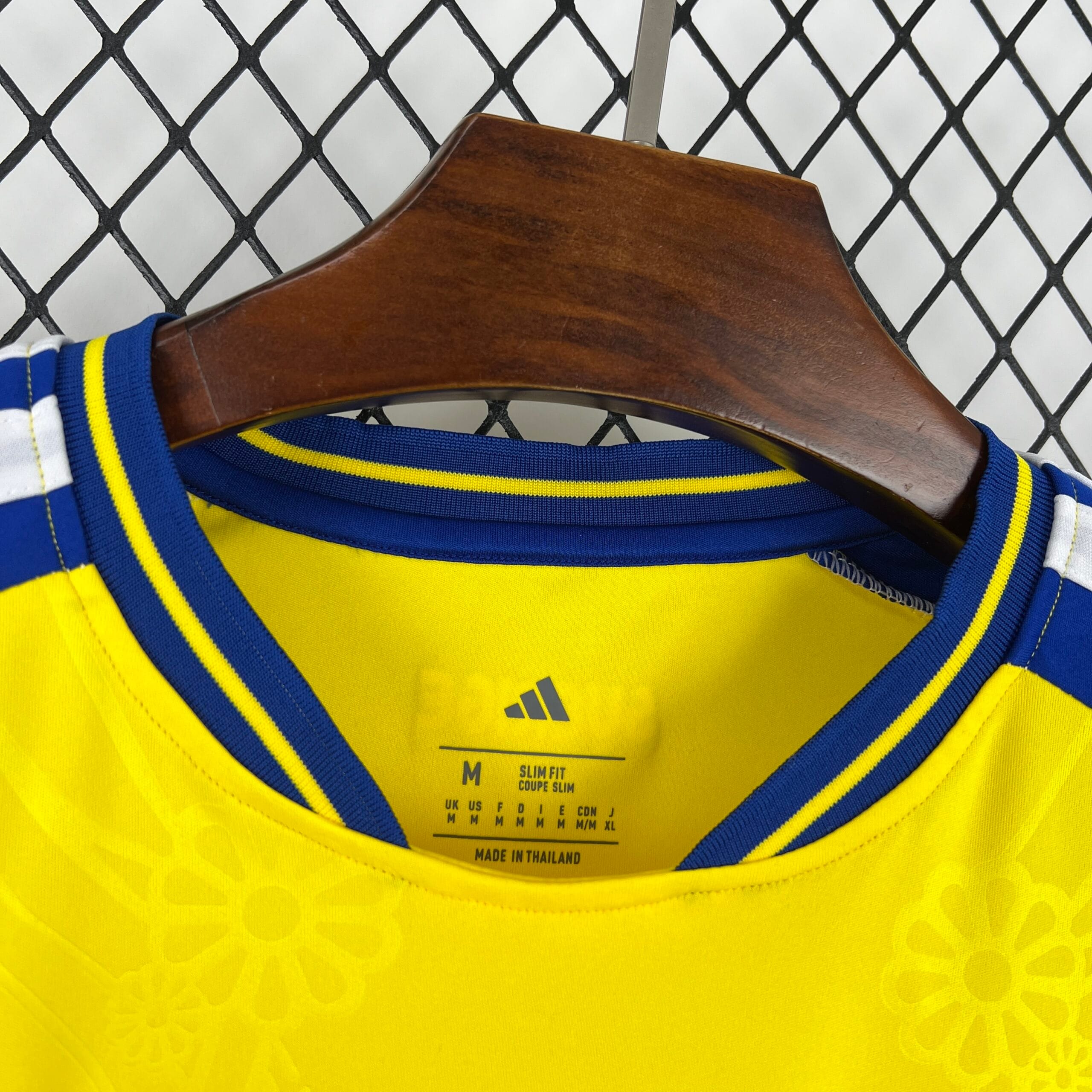 La estética de la camiseta de fútbol de Suecia se define por su limpieza y contraste. Presenta un cuello redondo con ribete azul y bandas laterales que estilizan la silueta deportiva, proyectando una imagen de orden y potencia. En el pecho reside el símbolo de una trayectoria histórica: el escudo detallado de la federación sueca, que resalta con orgullo sobre el fondo amarillo solar, convirtiendo esta prenda en un objeto de deseo para coleccionistas y seguidores de todo el mundo.